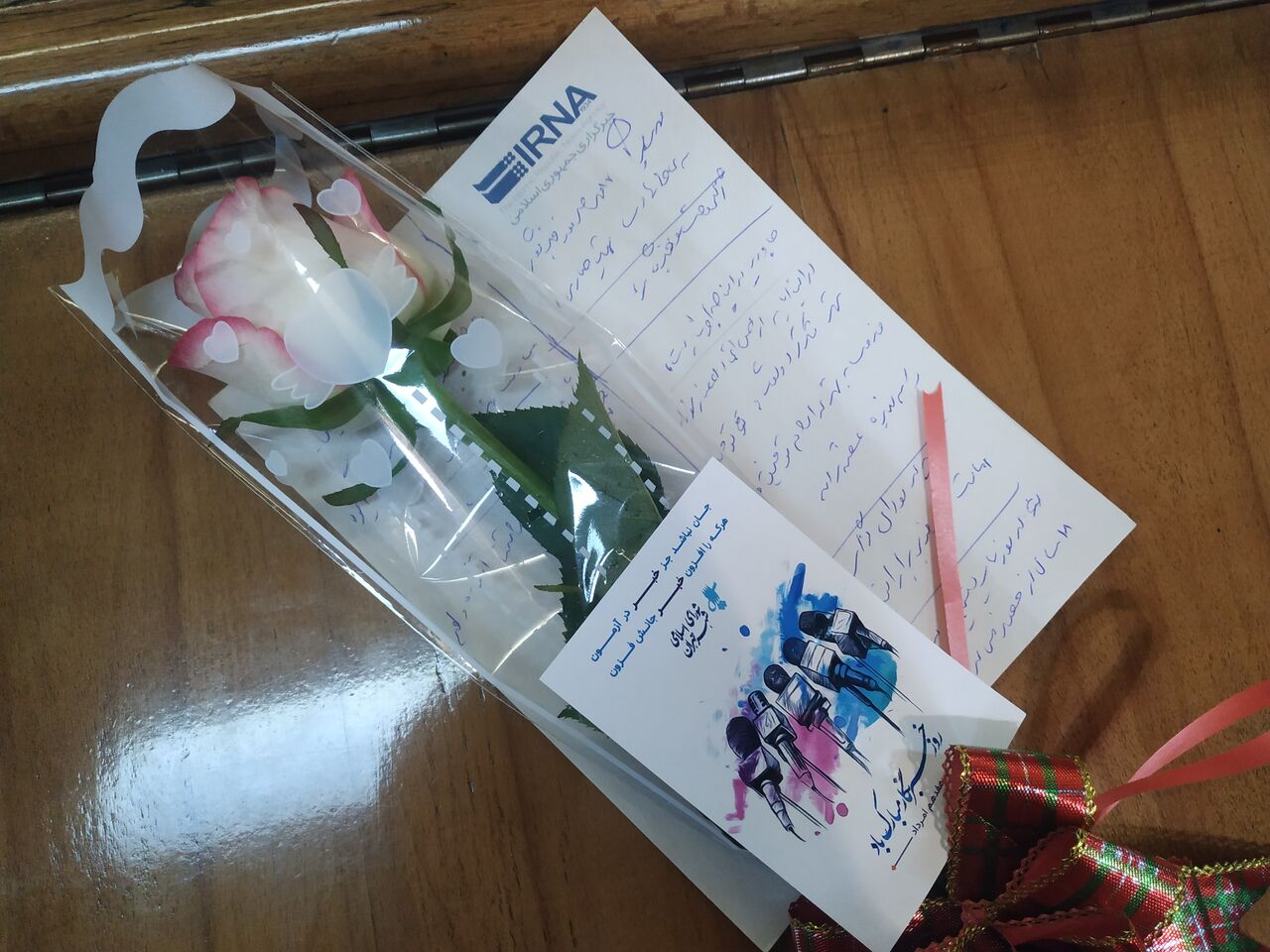 مهدی چمران، پرویز سروری و نرجس سلیمانی به نمایندگی از همه اعضای شورای شهر به خبرنگاران حاضر در صحن گل رُز هدیه کردند.